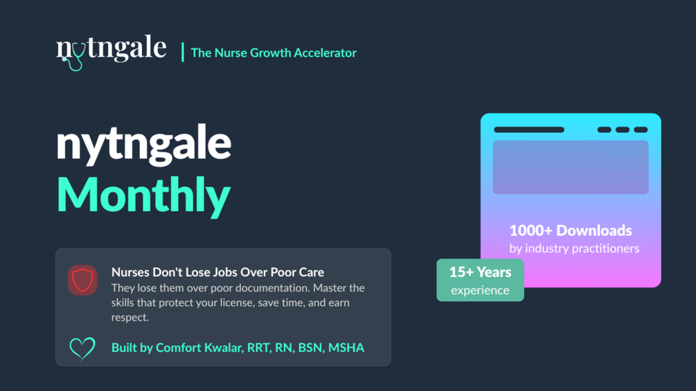 Led by Comfort Kwalar, RRT, RN, BSN, MSHA, valedictorian in Healthcare Admin, chart reviewer, and founder of nytngale - your learning is grounded in real shift experience, not theory.